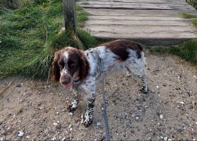 Det går bättre och bättre. Ibland springer hon lugnt bredvid mig och det är helt okej. Jag har inte varit så pigg på sistone, så det har passat mig bra att springa lite långsammare. Ibland har hon dock varit lat och jag har fått dra henne framåt. I början tänkte jag att hon inte orkade, att hon var trött, men när jag släpper henne på en större yta är det inget fel på energin. Och resten av dagen är hon pigg som vanligt och vill springa efter boll och pinnar.